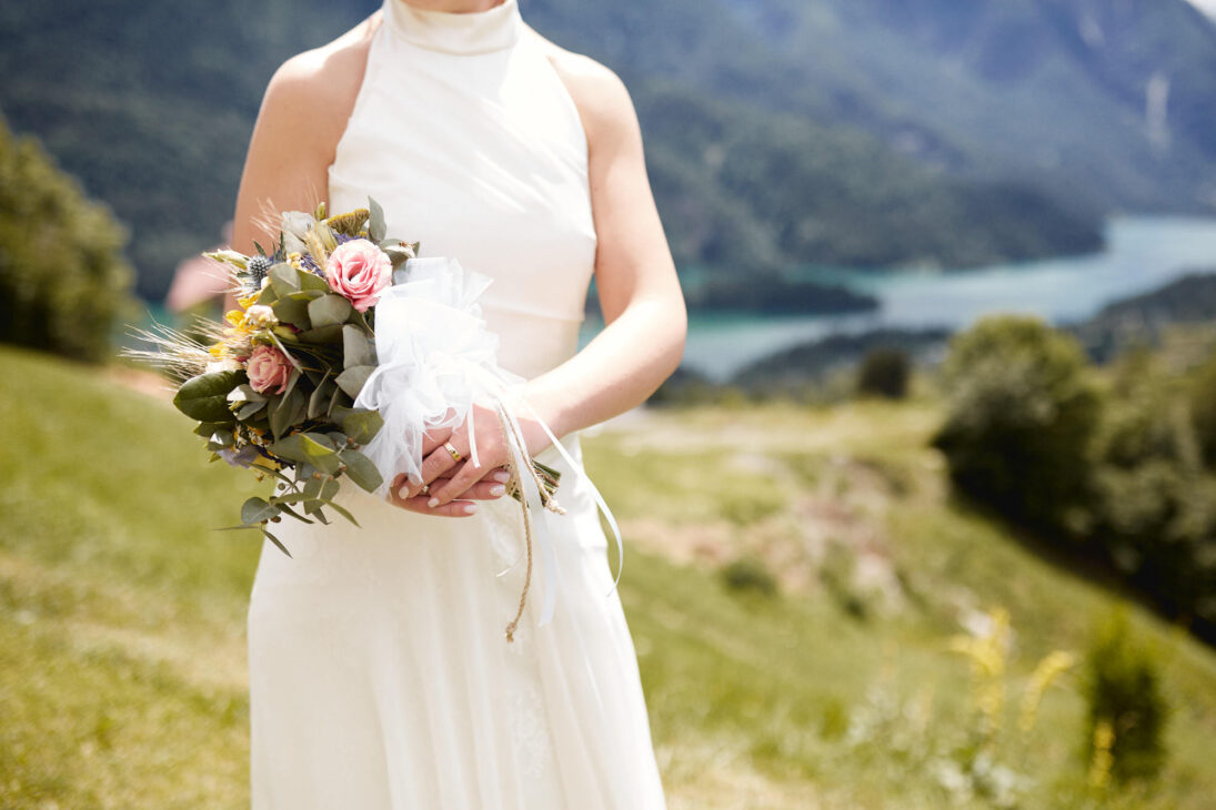 Dopo la cerimonia, un momento di convivialità presso il bar del paese ha permesso di realizzare alcuni scatti di coppia molto emozionanti, con lo sfondo suggestivo del lago del Centro Cadore. Questi momenti di relax e felicità hanno reso le fotografie ancora più autentiche e spontanee, riflettendo perfettamente il tema scelto dagli sposi.