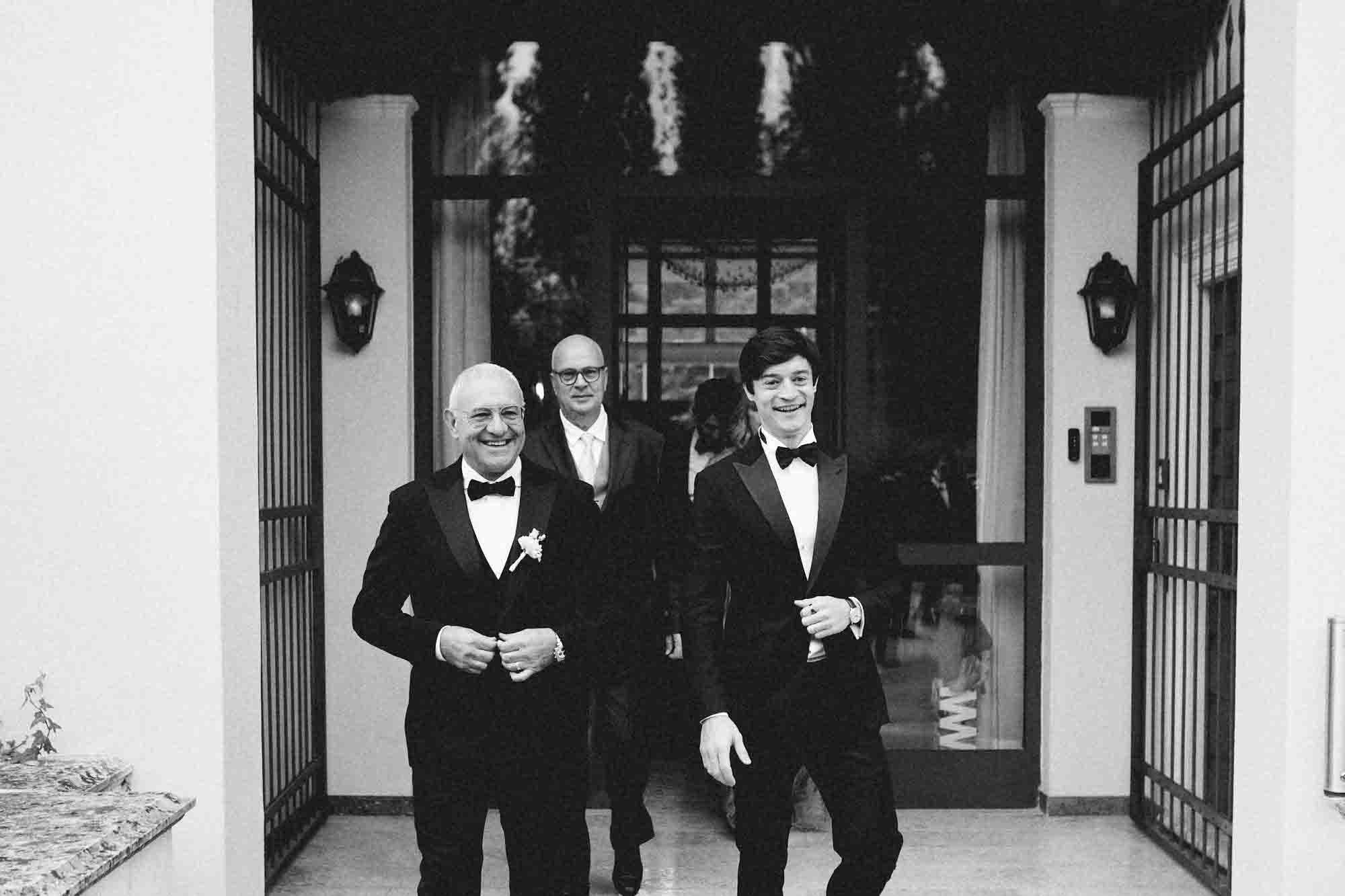 Ho fotografato lo sposo che scendeva la scalinata in pietra con i suoi testimoni. Passi decisi, qualche battuta, la tensione che si scioglie in risate. Poi il silenzio che cade quando Virginia è apparsa.