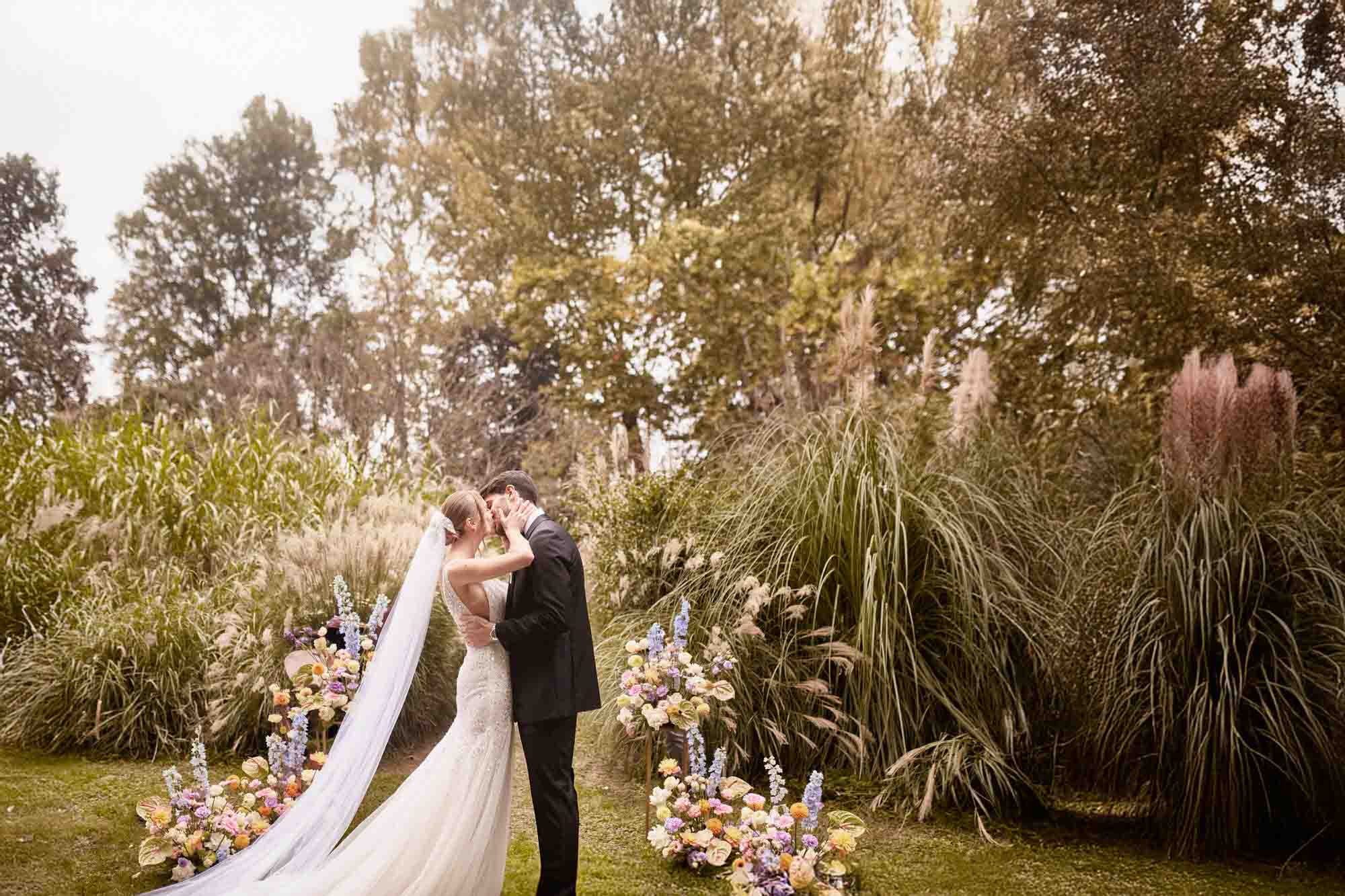 Virginia è cresciuta tra le Dolomiti di Belluno. Giuseppe viene dalla colta Ferrara. Vivono a Londra. Quando hanno scelto una villa veneta nei dintorni di Vicenza per celebrare il loro matrimonio, hanno portato con sé tutto questo — le montagne, la pianura padana, l’energia di una città come Londra — e lo hanno depositato in un giardino storico che sembrava fatto apposta per tenerlo.